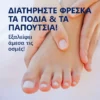 - ΠΡΟΣΤΑΣΙΑ ΑΠΟ ΤΗΝ ΚΑΚΟΣΜΙΑ: Διατηρεί τα πόδια και τα παπούτσια φρέσκα και χωρίς κακοσμία καθ’ όλη τη διάρκεια της ημέρας, χωρίς ανιχνεύσιμη οσμή μετά από 8 ώρες.